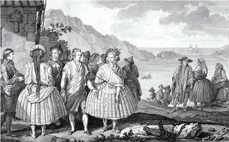 Imagen N° 1: Trajes de los habitantes de Concepción. - Fuente: Conde de La Pérouse, Voyage de La pérouse autour du monde, París, 1797