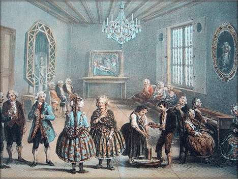 Imagen N° 2: Tertulia hacia 1790 . - Fuente: Claudio Gay, Atlas de la historia física y política de Chile, París, 1854
