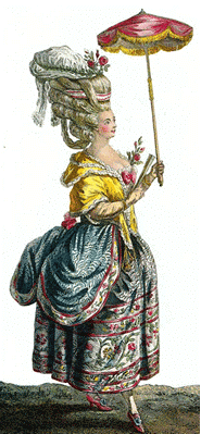 El vestido femenino europeo durante el siglo XVIII sufrió alteraciones diversas. En Francia, a mediados del siglo XVIII, la mujer de la alta nobleza ocupaba telas livianas, miriñaques simples, y dejaba ver solamente los zapatos. Sin embargo, la moda francesa –que era la que marcaba la pauta para el resto de Europa– experimentó, en unos cuantos años, diversos cambios: las tendencias de la moda se desenvolvieron rápidamente, sobre todo, a partir de 1770.